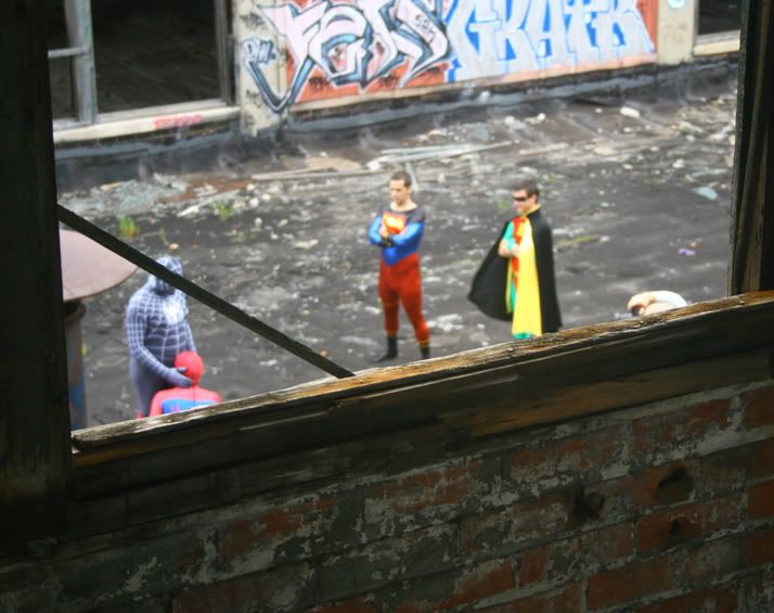 spider man whipped it out shortly after, and it was time to go. who the hell knows what went down after we left. we can just hope the roof collapsed.... and for the record, yes, they infact knew we were also in the building.....